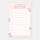 Girly Pink Floral Rosa Personalizado Para Hacer Lista De Notas Post-it. Una moda moderna y agradable de color rosa con flores de flores rosadas y hojas verdes. Personalice este diseño personalizado con su propio nombre o texto.