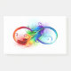 Símbolo de infinito dibujado artísticamente con una hermosa pluma arco iris sobre fondo blanco. Estilo tatuaje.