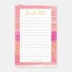 ¿Quién dice que hacer las cosas no puede ser divertido? Este diseño de confeti dorado de puesta de sol presenta tipografía de Relieve metalizado falso dorado "para hacer lista" encima de una lista de verificación lista para tus artículos para hacer. El marco de rayas pintadas de rosa y naranja se acentúa con puntos de Relieve metalizado de imitación dorada, y el nombre personalizado lo convierte en una excelente opción de regalo.