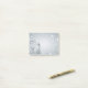 Modern Calligraphy Season of Joy Winter Trees Navidades Post it Notes - En colores azul plateado mudo, un stand de pinos de arte - parado en una escena de nieve hecha al estilo bokeh - Alegría escrita en una caligrafía guionada a mano