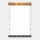 Estas notas tienen un diseño llamativo de arañas, con una banda naranja en la parte superior para que puedas personalizar con tu propio texto o tu nombre. Las arañas están en brillantes tonos naranja, violeta y verde, recorriendo a lo largo de tres lados de las notas.