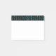 Esta pancarta Post-It tiene un diseño moderno de mediados de siglo de líneas con medio rectángulos en turquesa sobre un campo de negro.
