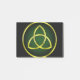 Un triquetra de oro sobre fondo verde sobre fondo negro (en varios productos). El triquetra es un antiguo símbolo que se remonta a los tiempos paganos y simboliza una trinidad, aunque la trinidad es un tema de debate: Padre, Hijo y Espíritu Santo; las tres etapas de una mujer (doncella, mujer y corona); el encerado, lleno y menguante lunas; pobres, clase media y ricos; y muchas otras.