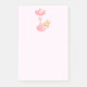 Sticky nota con un adorable ilustracion de un pequeño conejito marrón de bebés usando una pequeña corona dorada. Llevado por globos en una manta rosa de corazón.
