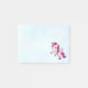 Notas pegajosas con un unicornio alado blanco con melena rosa, cola y pezuñas. El cuerno tiene anillos de color arcoiris y se parece a una golosina de caramelo. Este lindo unicornio está criándose en sus patas traseras. Corazón rosa dulce en la mejilla y las pestañas cincelarias largas