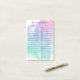 La organización diaria de post-it se compensa con hacer listas en cuatro categorías (rapto; compra; llamada/correo electrónico; limpio), pero puedes personalizarlas después de tus propias necesidades. El práctico bloc de notas incluye un lavado de acuarela en un gradiente que va del violeta al verde azulado. Agregue su nombre en un script con encanto.