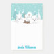 Estas divertidas y lindas notas adhesivas se pueden personalizar con un nombre. El diseño presenta a una adorable familia de zorros árticos en un entorno invernal mágico con árboles cubiertos de nieve. Al fondo hay un cielo azul verde azul turquesa y copos de nieve que caen.
