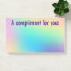 ¡Una bella y pequeña almohadilla de notas pegajosas, perfecta para dar cumplidos a compañeros de trabajo, familiares o extraños! ¡Difunde el amor! ¡Acá algunos ejemplos de elogios que podrías dar! "¡Eres tan talentoso!" "¡Gracias por ser un amigo tan fuerte y solidario!" "Estás haciendo un gran trabajo manteniendo la calma en tiempos difíciles. ¡Manténganlo levantado!" "¡Tu pelo es fantástico!" "¡Admiro lo positivo que eres!"