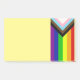 La variación "Progreso" de la bandera arcoiris agrega un chevron a lo largo de la cadena que presenta rayas negras, marrones, azul claro, rosas y blancas para llevar a esas comunidades (personas marginadas de color, personas trans, y quienes viven con VIH/SIDA y los que se han perdido) al frente; "la flecha señala a la derecha para mostrar el movimiento hacia adelante, mientras que estar a lo largo del borde izquierdo muestra que aún hay que el progreso por hacer."