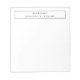 Desde el escritorio de bloc de notas. Características nombre en tipografía complementaria sobre fondo blanco sólido. Mucho espacio de escritura para notas, recordatorios y listas.