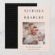 Comparte la noticia de tu compromiso con estas elegantes tarjetas de anuncio que presentan una foto cuadrada con sus nombres en la parte superior en letra clásica, unidos por un etsigno ornamentado. Personalice con dos líneas de texto personalizado en la parte inferior para detalles adicionales o su sitio web de boda.