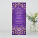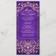 Estos elegantes y delgados menús bodas, con impresionantes tonos de oro pálido resplandeciente y suntuosos berenjenas violetas, son una mezcla de sabores Art Nouveau y Victorianos, con un marco elegante de hermosos remolinos y delicados andamios, y texto en escritura formal y tipos de letra clásicos en serif y en bloque. El texto de la invitación a la boda es completamente personalizable. Personalice la parte posterior con su información de recepción y/o RSVP para ahorrar costes en tarjetas RSVP y Reception separadas, o elimine esos campos para dejar el espacio en blanco.