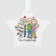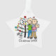 Un adorable adorable adorno acrílico de adornos de palos de vacaciones de Navidades muestra a un adorable padre nuevo y a una madre sosteniendo a una niña en una manta rosa y al gato familiar frente a un adornado árbol de vacaciones. También tiene un área donde puede añadir su apellido antes de hacer el pedido. La parte posterior del ornamento presenta el mismo diseño con un área que puede ser fácilmente personalizar para decir Navidades 2014 o el año en curso. ¡Este adorable adorable adorno acrílico de Navidades adorables con figuras de palos será apreciado en los años venideros!