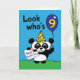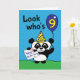 Noveno cumpleaños - Boy Panda con globo y tarjeta