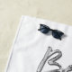 Toalla de playa con efecto plata Texto de Beach Bride (parecido a la imitación) y anillo impreso en fondo blanco