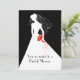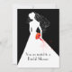 Invitación nupcial elegante de la ducha hecha en negro, con la silueta blanca de una novia, sosteniendo amapolas anaranjadas bonitas. La parte posterior tiene un área de texto blanca sobre un fondo negro adornado con las amapolas anaranjadas en la esquina izquierda inferior. Todo el texto, en el frente y la parte posterior, está listo para personalizar para el día especial de su novia. Una invitación bonita que la novia acariciará por los porvenir.
