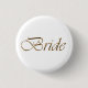 Novia, guión dorado elegante botón de alfiler blanco moda