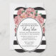 Hermosa Invitación a la ducha - Rayas negras y blancas bajo un diseño oval clásico, adornado con flores en ciernes. Añadir el borde del soporte para un toque especial!