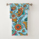 El colorido patrón paisley paiseico macizo, étnico y floral, en un fondo azul cambiante.
