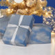 Este diseño de papel envolvente presenta una foto de nubes blancas y grises, junto con el cielo azul.