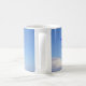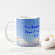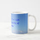 "La felicidad de tu vida depende de la calidad de tus pensamientos" impreso en una foto del cielo creado en una taza de café.