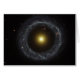 Anillo de los molinillos de viento calientes de las estrellas azules alrededor del núcleo amarillo de la galaxia del objeto de Hoag