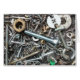 Fotografía del cajón de chatarra de una caja de herramientas con tuercas, pernos, uñas y todo lo pequeño y metálico
