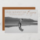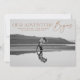 ¡Comparte la noticia de tu compromiso con el estilo con estas modernas invitaciones de compromiso! La invitación incluye la frase "Nuestra aventura empieza" en las letras de moda de terracota sobre tu foto de compromiso horizontal. Personalice la parte delantera de la invitación agregando sus nombres y detalles adicionales. La tarjeta se revierte para mostrar una foto adicional con espacio para el sitio web de su boda u otra información.