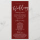Bienvenidos a nuestra tipografía boda, el tema rojo romantico elegante y moderno, la tarjeta del programa de ceremonias Bodas. Está diseñado con acento de desplazamiento que puede ser personalizado con texto personalizado/ personalizado para su fiesta nupcial, detalles de la ceremonia, notas conmemorativas y mensaje de agradecimiento. Si está buscando otros tipos y tamaños de tarjetas de programa, busque en nuestra sección de colección de tarjetas de programa correspondiente.