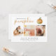 ¡Esta invitación de bebé de colección de fotos dulces es perfecta para presentar a tu bebé Caída / Otoño! También puedes enviarlo como tarjeta de vacaciones de Acción de Gracias y una tarjeta de agradecimiento para bebés. El diseño, sencillo pero elegante, incluye tres de sus fotos familiares favoritas y una mezcla de tipografía elegante y escritura a mano. También hay una linda imagen de calabaza con el corazón para acompañar el texto.