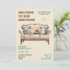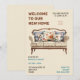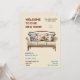 Celebra tu nueva casa con una encantadora invitación a la fiesta de bienvenida con un acogedor sofá marrón y crema adornado con almohadas marrón claro y azul de lanzamiento. Perfecto para invitar a amigos y familiares a compartir la alegría de su nuevo espacio, este elegante diseño marca la pauta para una reunión elegante. Descarga tu plantilla de invitación ahora y prepárate para crear recuerdos duraderos en tu nuevo hogar!
