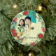 Añada un toque navideño y personal a su decoración navideña con estos llamativos adornos de cerámica redonda con sus fotos especiales personalizadas First Christmas decoradas en su árbol. Envíe un regalo especial con este elegante ornamento navideño personalizado con fuentes elegantes. Personaliza con tus propios nombres y el año.
