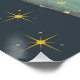 Esta es la imagen original de Nuestra Señora de Guadalupe de la tilma de Juan Diego realzada con un halo de rayos dorados y un fondo estrellado azul medianoche. Una hermosa manera de honrar a la Virgen María en su hogar.