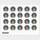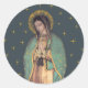 Hojas de pegatinas redondas de Nuestra Señora de Guadalupe con la imagen original de la tilma de San Juan Diego realzada con un halo dorado y un fondo estrellado de azul medianoche. Perfectas para envolver regalos, tarjetas de felicitación, cubiertas de libros y más.