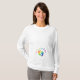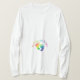 " Nuestro arco iris después de la tormenta que la camisa de maternidad diseñó especialmente para esperar madre-a-está experimentando un embarazo de la esperanza después de un aborto involuntario o de una pérdida del niño. Esta camisa de maternidad de la manga larga ofrece un par de huellas adorables, arco iris-coloreadas del bebé con los dedos gordos en forma de corazón encaramados por debajo multicolor, texto de la escritura que dice "nuestro arco iris después de la tormenta."