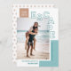 ¿Pudiste viajar finalmente? Comparte sobre tu aventura con esta elegante tarjeta de vacaciones con foto. Cuenta con una superposición de texto de esquema moderno que dice "ESCAPE", junto con plantillas de texto para personalizar. Un esquema de color de aqua teal, teal ahumado claro y coral terracota claro da a estas tarjetas de Navidad un aspecto playero, perfecto para viajes tropicales (o cualquier vacaciones, en realidad). :) La parte trasera de la tarjeta contiene un patrón de sol boho en terracota claro.