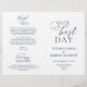 Esta es la tarjeta del programa de la ceremonia de boda plegable, en el tema del guión romántico de la elegancia de la Marina Azul. (Nuestro mejor día) Está diseñado con acento de desplazamiento que puede ser personalizado con texto personalizado/ personalizado para su fiesta nupcial, detalles de la ceremonia, notas conmemorativas y mensaje de agradecimiento. ** Nota: estos programas de papel de peso de texto llegan planos y requieren plegado para ensamblar.
