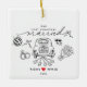 Celebra el amor y nuevos comienzos con este encantador adorno de Nuestra Primera Navidad casada. Con un ilustracion hecho a mano de un auto "Just Married" con latas de lata, anillos de boda, ramo y acentos festivos, este keepsake es la manera perfecta de recordar su primera temporada de vacaciones como recién casados. Un regalo para las parejas, este adorno recién casado puede ser personalizado con nombres y el año, lo que lo convierte en un tesoro heredero vacacional que se colgará en el árbol en los años venideros. Marque su hito con este primer adorno casado de Navidad — un recuerdo eterno para las parejas que celebran su feliz eternidad.