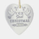 Nuestra primera Navidad Silver Love Birds Ceramic Ornament