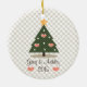 Personalice este ornamento con usted y el nombre y el año de su sweetie de su primer navidad junto. Un árbol de navidad adornado con los ornamentos rosados del corazón y un oro protagonizan en el top. El trasero y el delantero de este ornamento se pueden modificar para requisitos particulares para decir lo que usted quiere. © Chrissy H. Studios, LLC de las ilustraciones. Todos los derechos reservados.