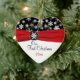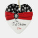 Recuerde su día especial con este los copos de nieve blancos y negros hermosos, ornamento en forma de corazón con la FALSA cinta roja y medallón del copo de nieve. Usted puede modificar el texto para requisitos particulares para decir lo que usted desea. También hace juego el negro, el blanco, y los copos de nieve rojos que casan la colección mostrada abajo.