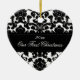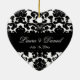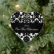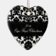 Este damasco blanco y negro en forma de corazón, ornamento de cerámica hace juego la colección del boda en este sitio, y haría un recuerdo agradable de su día especial.