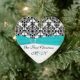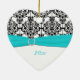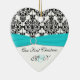 **NOTEN que la cinta y las joyas son obras de arte y no son reales. Este adorno de cerámica en forma de corazón encaja con la colección de bodas Aqua, White y Black Damask que se muestra a continuación, y le haría un agradable toque de su día especial.