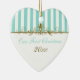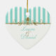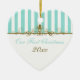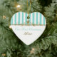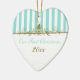 Este ornamento a rayas azul y blanco Aqua tiene detalles de desplazamiento dorado y se personaliza como un keepsake de la Primera Navidad. Coincide con la colección de bodas que se muestra a continuación, y le haría un buen recuerdo de su día especial, o un gran regalo para los recién casados.