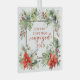 Celebra tu primera Navidad como una pareja comprometida con este adorno de vidrio que tiene una corona cuadrada con puntias, bayas y vegetación. La letra está en el mismo rojo que una de las hojas de las puntias. Pones el año para que puedas recordarlo para siempre.