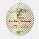 ¿Qué podía ser tan especial como su primer navidad como par? ¡Un diseño simple y festivo con una sensación totalmente retra! ¡Añada sus nombres o cualquier mensaje usted tiene gusto a la parte posterior para un ornamento verdaderamente personal! ¡Una manera romántica y única de acariciar su primer navidad como uno!