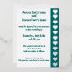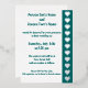 Trae un toque de diversión geeky a tu evento con esta invitación de boda que incluye un rico borde verde azulado en el lado derecho, decorado con un patrón de corazones pixelados impresos en Relieve metalizado real. El lado izquierdo de la tarjeta tiene mucho espacio para todos los detalles de tu evento de videojuegos con un texto de ejemplo en su lugar que se puede personalizar para que se ajuste a tus necesidades. Un gran corazón verde azulado de 8 bits termina todo en la parte trasera para crear una bonita nota final. Esta invitación coincidirá con cualquier otro de Nuestros corazones de 8 bits en producto Verde azulado para que pueda hacer su evento tan coordinado como desee.