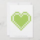 Diviértete con tu evento especial y comparte tu amor por los videojuegos clásicos y el uno al otro usando esta invitación de boda con un borde verde peridot en el lado derecho, decorado con un patrón de corazones de 8 bits. El lado izquierdo de la tarjeta tiene mucho espacio para todos los detalles de tu evento con algún texto de ejemplo en el lugar que se puede personalizar para que se ajuste a tus necesidades. Un gran corazón de píxel en peridot termina las cosas en la parte posterior para crear una gran nota final. No olvide consultar los demás productos del juego Nuestros corazones de 8 bits en Peridot para crear una verdadera coordinación de su evento.