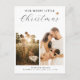 Esta sencilla y elegante tarjeta de Navidad de dos fotos de la universidad de invitación/ducha de bebé de agradecimiento y tarjeta de vacaciones de dos recienes nacidos de un solo modelo presenta un elegante y moderno diseño de color blanco y negro con una pequeña estrella. Cuenta con dos de sus fotos favoritas para bebés, un encabezado de "nuestros alegres Navidades" en una elegante caligrafía de escritura, y el nombre y estadísticas de su bebé con una fuente elegante. El reverso presenta su mensaje de agradecimiento/saludos de personalizado de vacaciones. Usa las herramientas intuitivas de diseño, tus fotos favoritas y tu inspiración, y haz que este minimalista y elegante collage multifoto de agradecimiento sea tu única tarjeta!