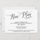 La distinción de este conjunto se debe a la elaborada fuente de escritura giratoria utilizada para las frases de acento. En el caso de que necesite informar a sus invitados que su boda se ha pospuesto, esta tarjeta ofrece una opción elegante. En esta pieza, se utilizó la fuente de caligrafía para crear un gráfico que representa las palabras "Nuevo Plan". Utilice los campos de la plantilla para agregar sus datos personales y hacer que este diseño sea suyo. El fondo se puede cambiar a cualquier color que prefiera. Por favor, comuníquese con nosotros para cualquier solicitud especial o para obtener ayuda para personalizar. // 98 //